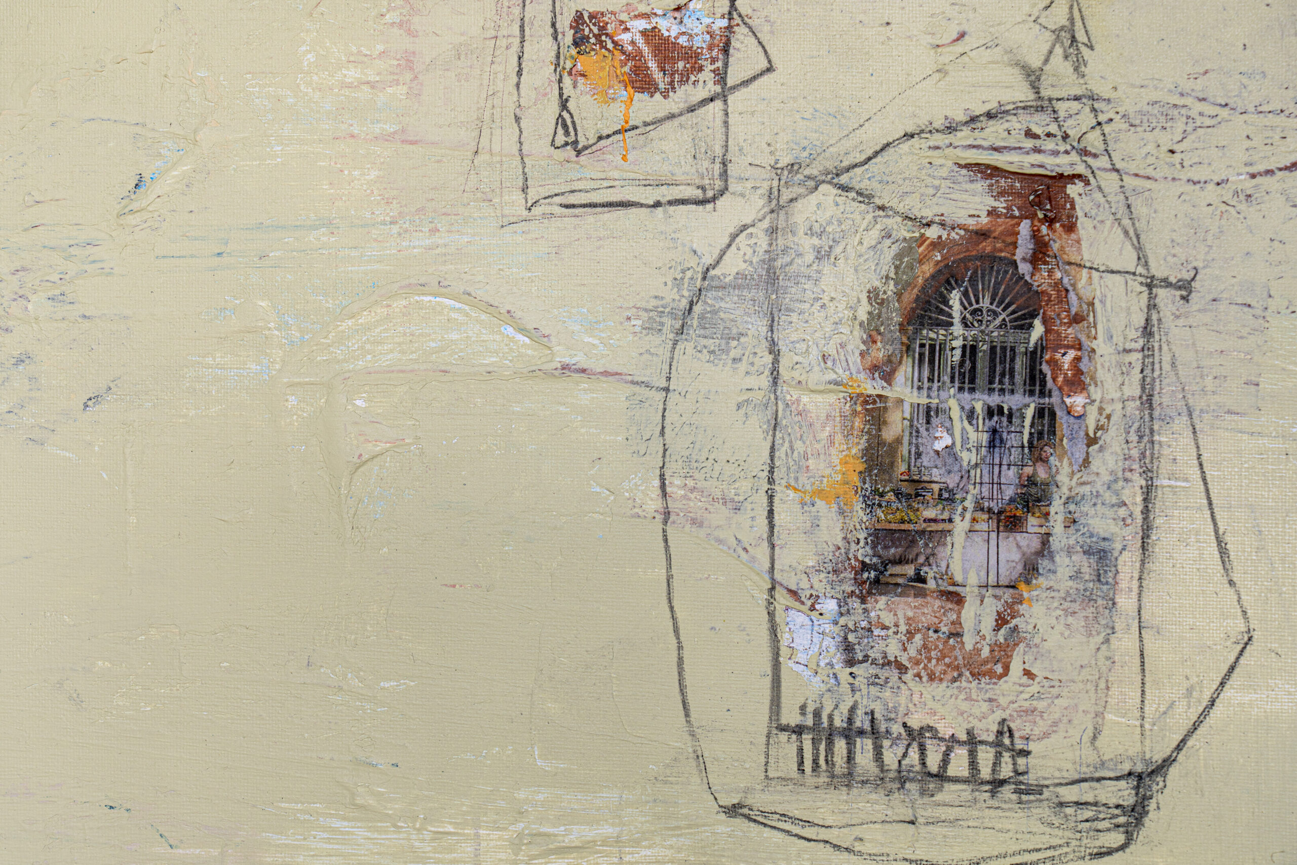 Omsloten Groen Omsloten Groen Drager: doek Techniek: Gemengd Jaar: 2025 Afmetingen: 70x50 cm Omsloten Groen-2 Detail Omsloten Groen-3 Detail